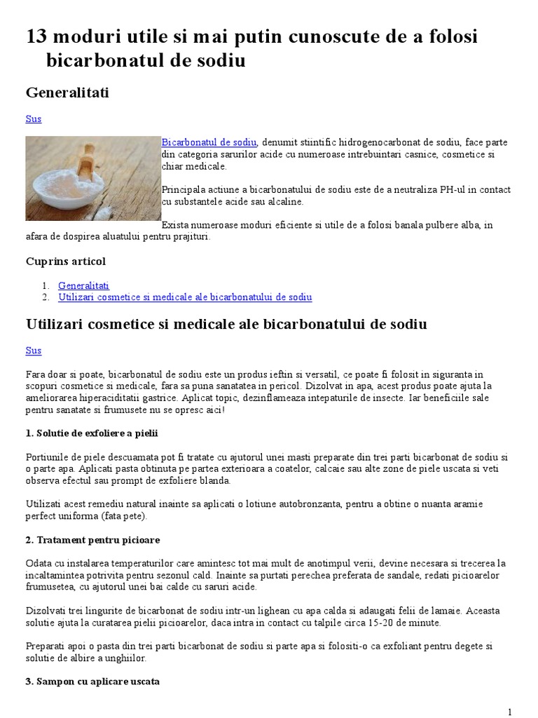 vizitati articolul complet aici : https://www.youtube.com/watch?v=0gA8mNI2-8s Ştiai ca bicarbonatul de sodiu ajută in tratamentul acneei, curăţarea tenului de punctele negre, pete şi tot felul de impurităţi, dar si pentru elimin. Al doilea pas consta in aplicarea unui scrub daca pielea este foarte delicata, se poate prepara un scrub pentru fata cu putin bicarbonat 5. Uleiul de masiline (un bun demachiant pentru ochi, fata si gat, care.