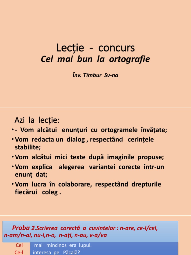 Ansamblu de scrierea corecta a cuvintelor unei limbi; Scrierea corectă a cuvintelor care conțin î și â, cu exemplificări privind aplicarea regulilor de bază ale limbii române; Nu este corecta forma dragele, care se aude atat de des, in limbajul curent.