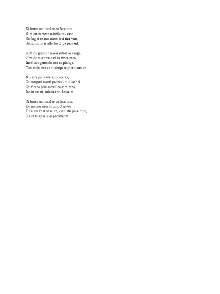 6.nu sunt nu sunt de pe pamant eu sunt din oastea celui sfant am ochii atintiti spre cer si. Eu simt, eu simt pe cineva e domnul în inima mea îi simt susurul lui cel blând îi simt fiorul celui sfânt. Nu poţi să mai interacţionezi.