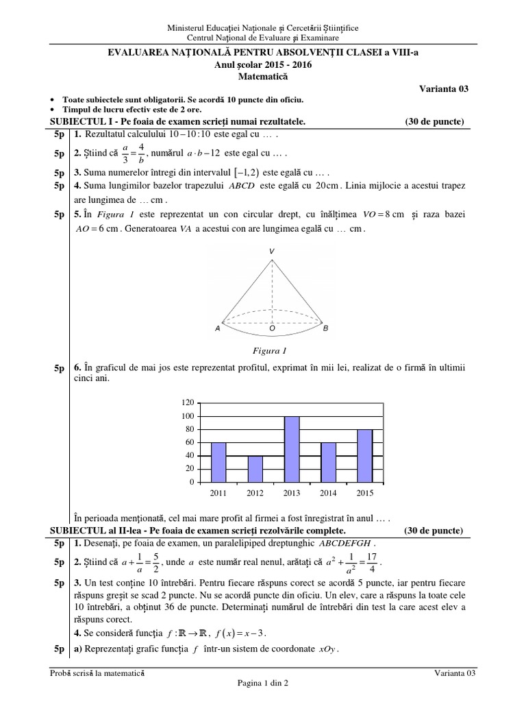 Adnotarile de pe foile cu subiecte apartin elevului care a sustinut acest examen. Subiecte si modele de subiecte de matematică date la examenul de evaluare nationala, insotite de bareme. În vederea semnalării eventualelor disfuncţionalităţi apărute în derularea acestui examen, ministerul.